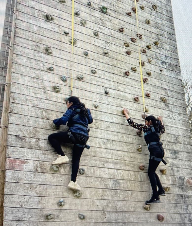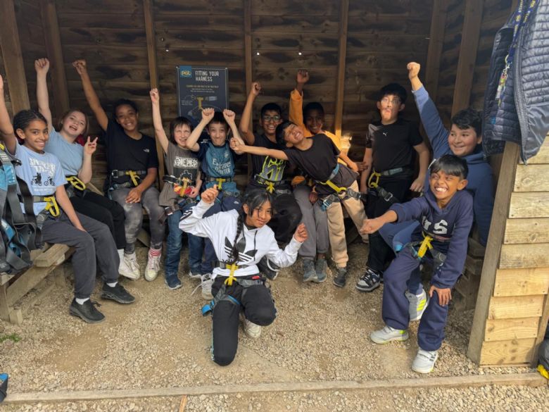 The children have taken part in the climbing wall -  (collectively they've climbed the equivalent to the height of the Eiffel Tower !!)