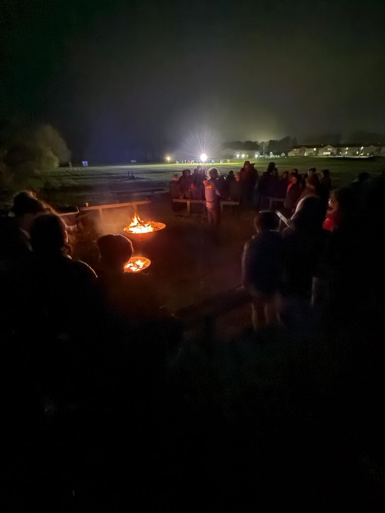 We’re just off to a campfire to sing some songs around the flames… fingers crossed the rain keeps off.