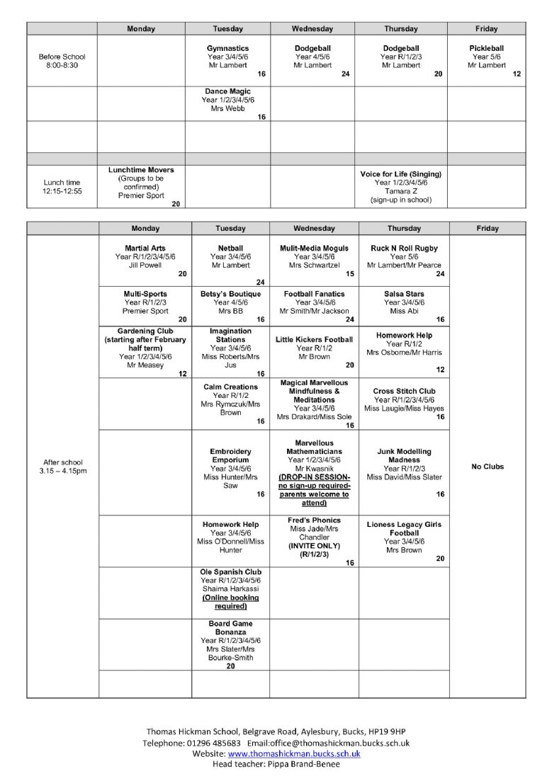 Below are the clubs that are running for Spring Term 2026.