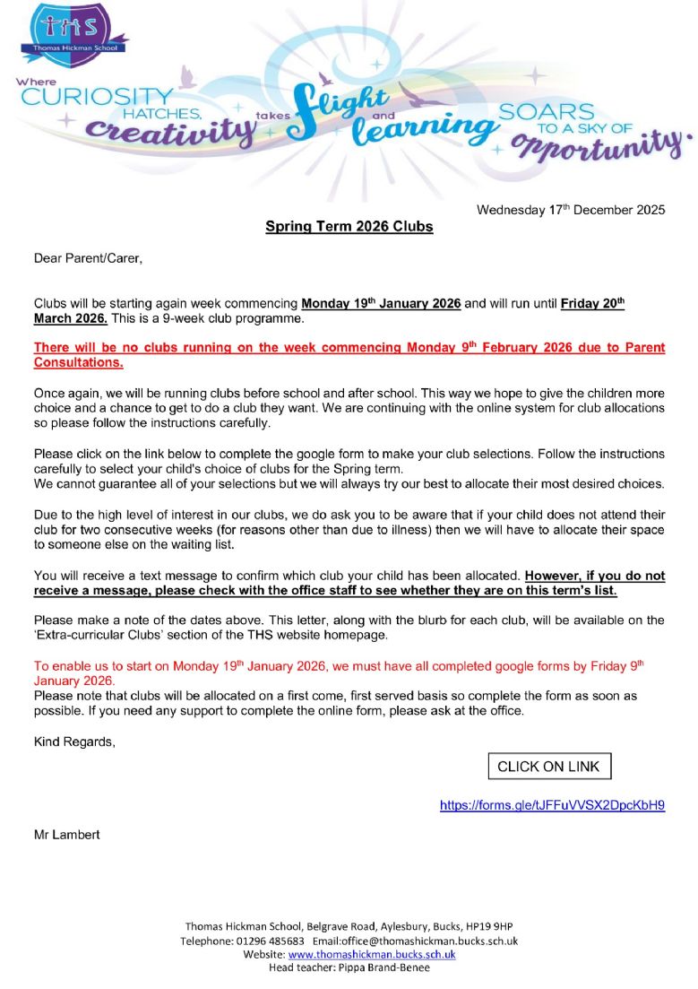 At THS, we pride ourselves on the extra-curricular club offer we provide. All the clubs are run by school staff are completely free - that’s 25+ free clubs per week!